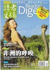《讀者文摘繁體中文版》是一本家庭月刊,涵蓋了大眾科學、美食烹飪、旅游休閑、金融政治、家居與園藝、藝術與娛樂、商業與文化。其他固定的專欄還包括了笑話、謎語、測試、動畫及讀者來信。 |