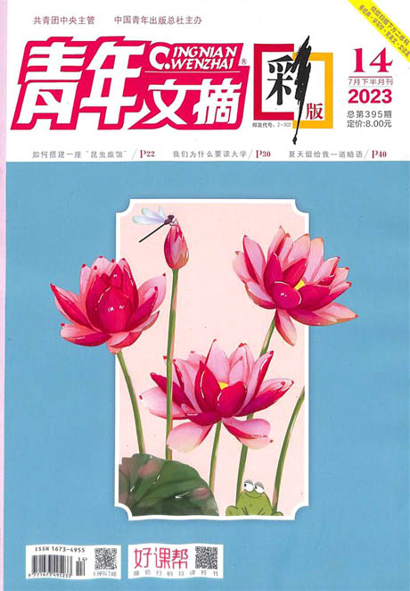 《青年文摘》是一本面向全國、以青少年為核心讀者群的文摘類綜合刊物,刊物集萃來自報紙、期刊、圖書等大眾媒體的名篇佳作,旨在為青少年打造一個豐富生動、健康向上的精神空間。 |