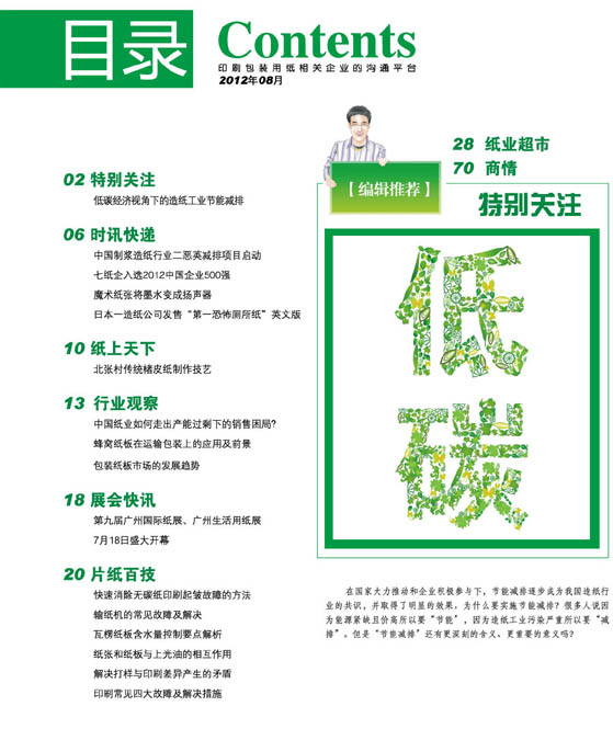 中國雜志網 >> 《紙業導購》雜志 >> 2012年8期雜志目錄