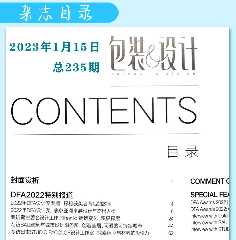 《包裝&設計》是平面設計的優秀參考刊物,為雙月刊,全年出版6期,逢單月15日出版,彩色精印。每年出版一本精裝合訂本。