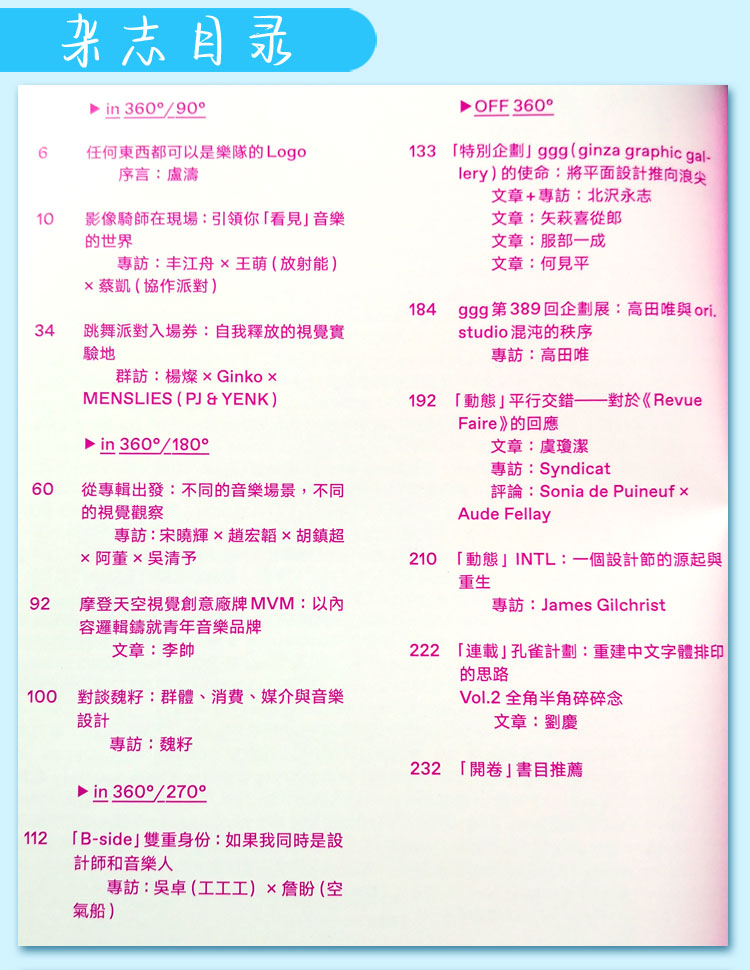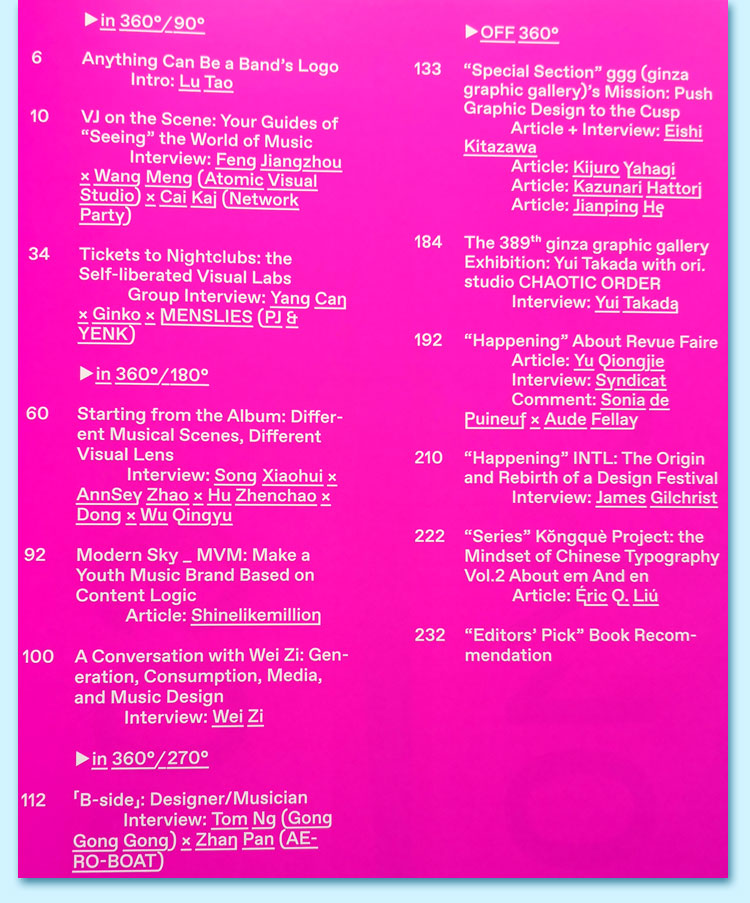 《Design 360°》以專業新銳的視角,網羅國際設計藝術領域的經典個案,內容涵蓋平面設計、產品設計、建筑設計、室內設計、圖形文化等多個設計藝術領域,以介紹世界各地的先進設計觀念、設計公司、設計師、成功案例、國際設計動態以及設計院校為主,旨在找尋一個當代設計師的舞臺,向業內人士提代一個學術交流的平臺,促進全球設計師、設計機構之間的互動與文化交流。