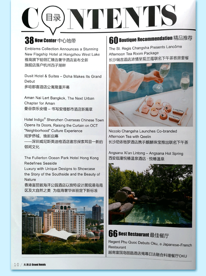 《大酒店》將為讀者展示全面的、權(quán)威的、細(xì)膩的酒店世界,鎖定高端酒店,更加注重酒店與消費(fèi)者的聯(lián)系。傳達(dá)酒店文化對(duì)現(xiàn)代人的影響,在奢華與享受的背后揭示酒店存在的真諦。