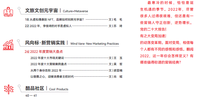 10 2022 年度營銷紅榜Top30 ……………………………… 本刊編輯部