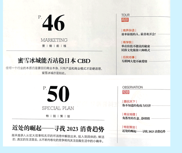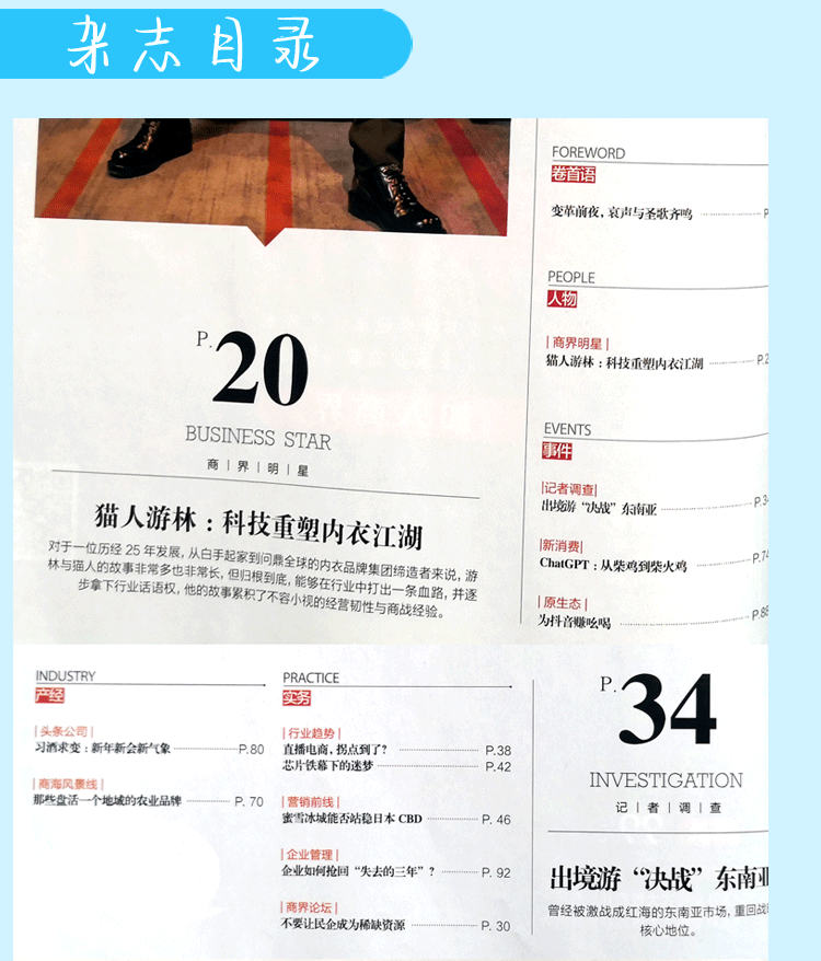 創(chuàng)辦于1994年的《商界》月刊,是全國(guó)公認(rèn)發(fā)行量最大、發(fā)行面最廣、最具市場(chǎng)影響力的商業(yè)財(cái)經(jīng)雜志,是國(guó)內(nèi)唯一商業(yè)財(cái)經(jīng)類暢銷月刊。有無(wú)數(shù)多的創(chuàng)業(yè)者和企業(yè)家因?yàn)榭础渡探纭范故聵I(yè)更上一層樓。