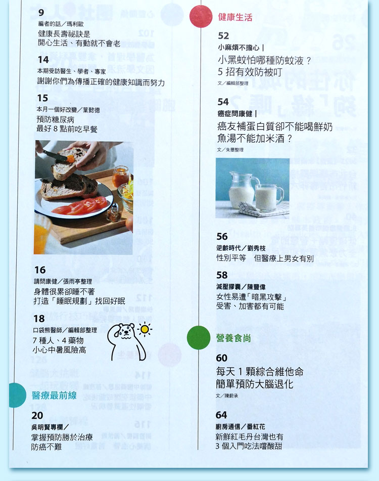 臺灣最暢銷的健康雜誌之一。以追求更美好的生命品質為目標,從內至外全面改善人們在身體、心靈及生活各方面需要,以達至最完美的人生。 內容涉及醫學科技的新發現、新觀念、新趨勢,到環境、食品營養、運動、人體衛生、生活習慣、人際關系的議題,內容豐富多彩。