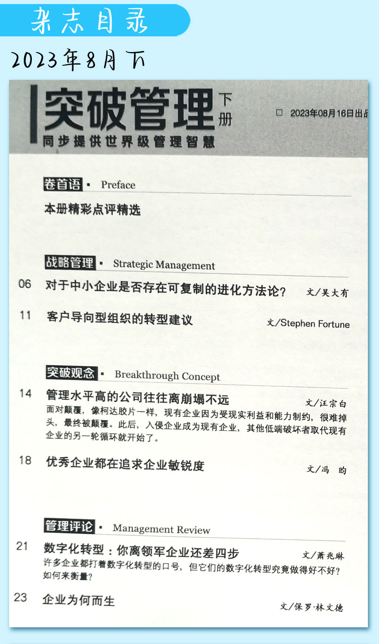 《突破管理》半月刊,啟迪管理智慧,提升管理能力;協(xié)助您解決企業(yè)管理的“模式、效率、執(zhí)行……”
