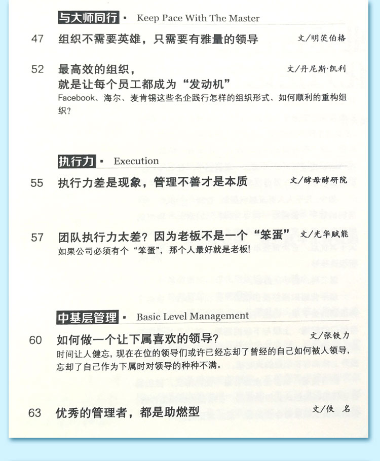 戰(zhàn)略管理/突破觀念/管理評論/管理前瞻/管理實務(wù)/管理案例/與大師同行/執(zhí)行力/營銷管理/人力資源管理/管理診斷/經(jīng)理輕松讀/一分鐘管理/管理百寶箱/管理故事……