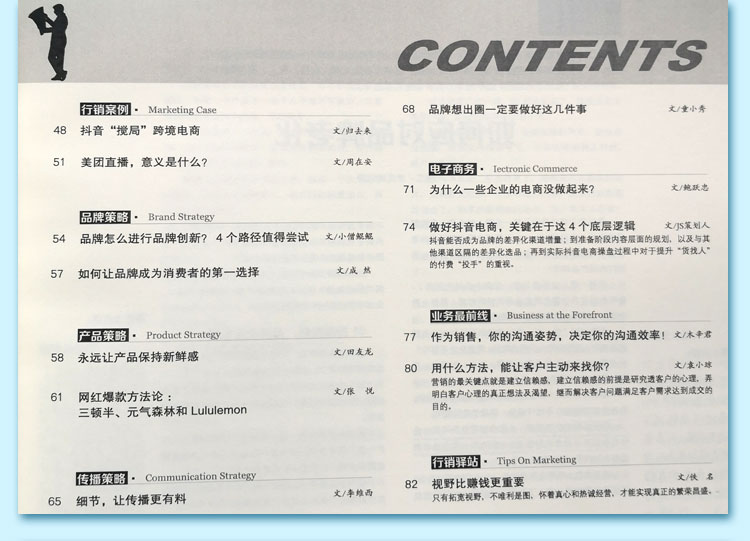 1、《大行銷》半月刊,選材,精雕細(xì)琢,稿源選自1136種國(guó)內(nèi)外企管報(bào)刊、互聯(lián)網(wǎng)、約稿以及錄音整理;被譽(yù)為“總裁紙上精品課程”;經(jīng)典中的經(jīng)典,精華中的精華;讓您省時(shí)、省力、省心;好讀、好看、好用、容易吸收;