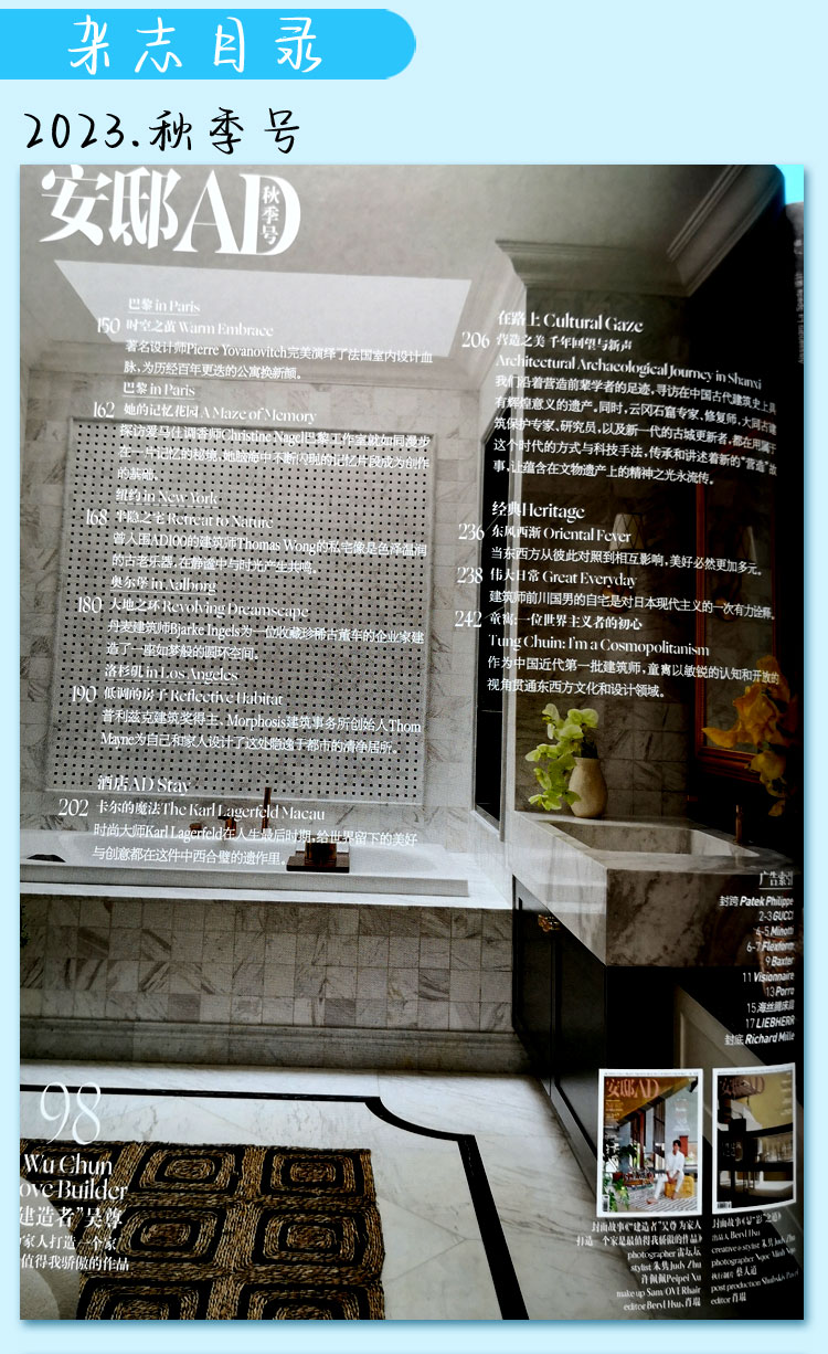 《安邸AD》不僅是一本家居設計雜志,“安”是安心、舒心的意思; 而“邸”在中文中,人們常說府邸宅邸,不僅有豪宅的意思,更包括豐富的人文內涵,是有關家和生活方式的雜志。