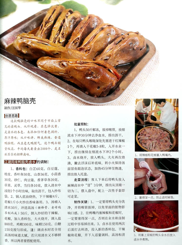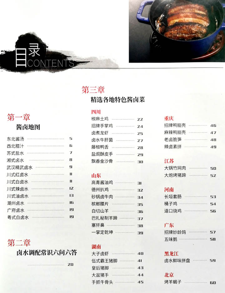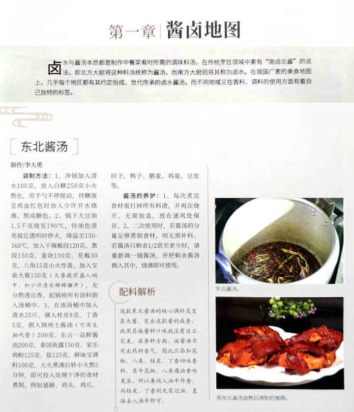 《醬鹵熏大全》歷時一年,反復訂正各地經典鹵水以及菜品的配方與做法,尋訪鹵水調制中的疑難雜癥的解決方案,集齊了全國二十多個省份的傳統創新鹵水。本書共五部分,“醬鹵地圖”一章涵蓋了東北醬湯、西北臘汁、蘇式鹽水、武漢精武鹵水、川式鹵水、粵式鹵水等六大地域的傳統風味醬鹵料湯;“鹵水常識”一章,筆者訪問了烹飪界的醬鹵調制大師以及業內高手,針對調制鹵水常見的六大問題,給出了基礎性、指導性的意見與建議,以供讀者在烹飪實踐中參考與借鑒;“精選各地醬鹵菜”則囊括了多個省份的經典、旺銷醬鹵菜式,如德州扒雞、桶子雞、醬油雞、鹵鴿子等,并著重介紹其所用醬湯鹵水的熬制方法;“煙熏技法”、“精選各地熏醬菜”兩章則介紹了烹飪中常用的煙熏方法以及多款傳統、創新熏菜,如柴溝堡熏肉、溝幫子熏雞、諸城熏豬蹄等,圖文并茂、一目了然。