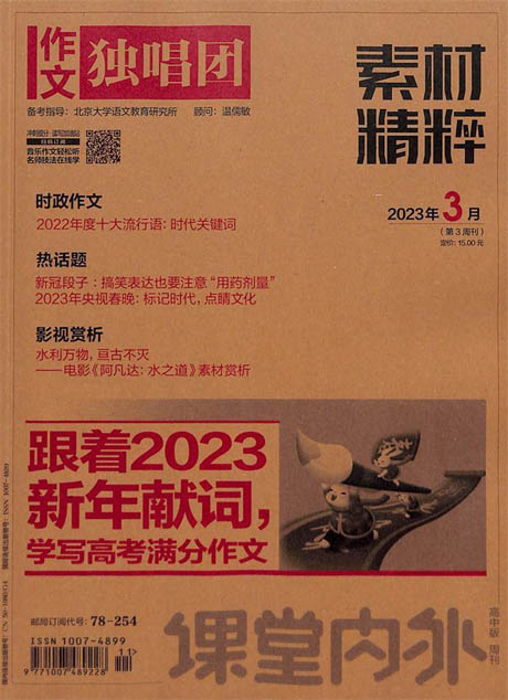 反映在作文寫作上,分析近五年的高考作文題,不難發(fā)現(xiàn)其強(qiáng)調(diào)關(guān)注生活,關(guān)注人性,關(guān)注社會(huì),重視社會(huì)現(xiàn)象及社會(huì)熱點(diǎn),注重辯證分析與邏輯思維能力的培養(yǎng),這也和《作文獨(dú)唱團(tuán)》主打?qū)嵤聶谀亢蜁r(shí)評(píng)文章的欄目設(shè)置目的一致。