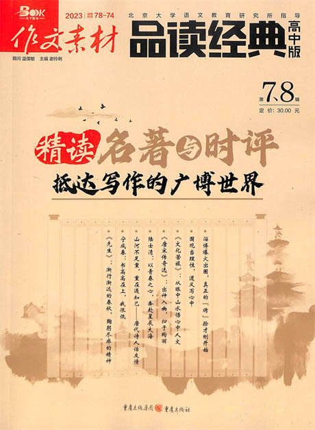《作文素材·品讀經典》是一本面向中學生的名家經典閱讀的讀物。每輯以名家為綱,精選名家名篇,并從寫作思路、手法、表達主題等角度對文章進行賞析,讓讀者在品讀經典、提升人文素養的同時,訓練閱讀思維,提升閱讀鑒賞能力,并以名家典范為學生寫作奠定基礎,提供借鑒。