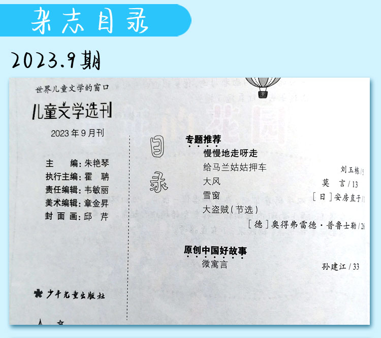 《兒童文學(xué)選刊》雜志堅(jiān)持以各家兒童讀物,報刊雜志為參照,以培養(yǎng)小讀者的純正的閱讀口味為出發(fā)點(diǎn),通過專題推薦,新作佳作,典藏中篇以及與讀者的多樣化互動等欄目,努力呈現(xiàn)我國目前兒童文學(xué)創(chuàng)作風(fēng)貌與現(xiàn)狀,使讀者了解國內(nèi)原創(chuàng)。