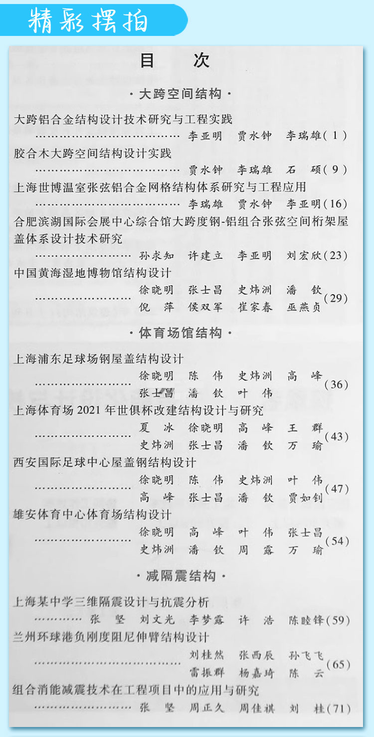 主要欄目:包括工業與民用建筑中的混凝土結構、鋼結構、預應力結構、索膜結構、砌體結構、地基與基礎、工程抗震、工程檢測、房屋加固與改造、建筑新技術新材料開發等方面的研究應用成果、設計施工經驗以及工程事故分析處理、結構軟件的應用、規范和規程的修編及背景介紹、技術講座、國內外科技綜述、重點工程報道、科技簡訊、設計論壇、問題和討論、工程實錄。報道特色:內容以實用性、科學性、導向性和資料信息性為特色。發行量始終居行業同類期刊之首。